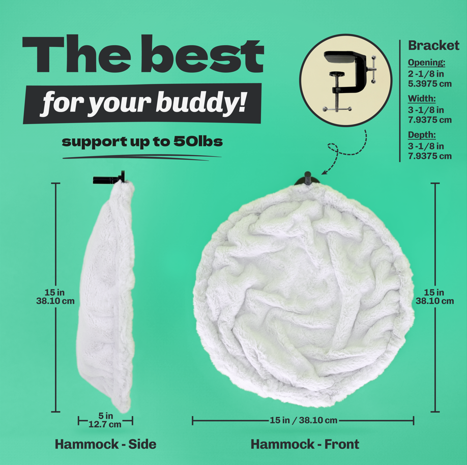 Bien qu’il ait à la base été conçu pour les chats, le hamac convient aussi à d’autres petites bêtes de taille et de poids équivalents ou inférieurs à ceux des chats, tels que des cochons d’Inde, lapins, petits chiens, etc. Tu peux régler facilement le hamac en fonction de la taille de ton animal. Assure-toi simplement que le poids de ta peluche vivante ne risque pas de faire partir ton bureau ou ce qu’il y a dessus à la renverse.